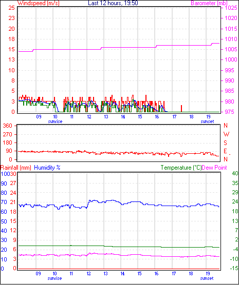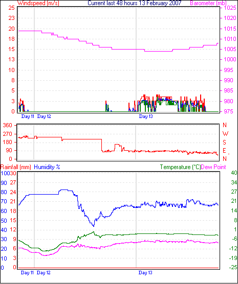 | Average windspeed (ten minute) | 1.5 m/s | Wind Direction (ten minute) | SW (225°) |
